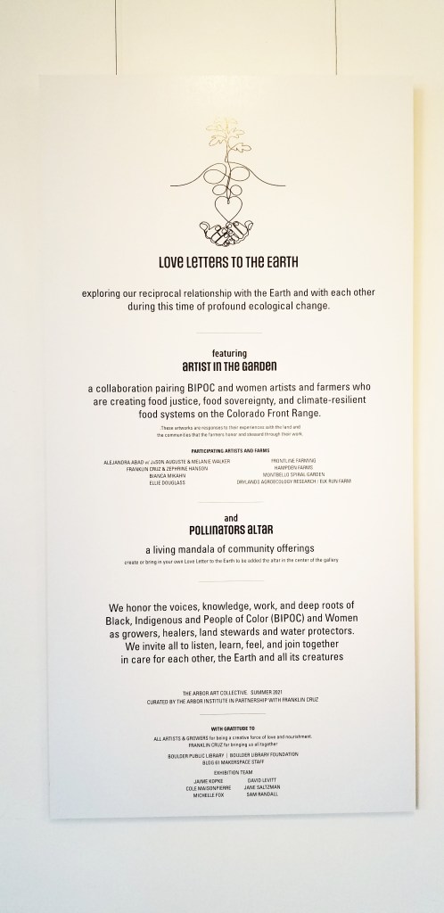 August 22, 2021March 19, 2026 Artist Illumination and Galleries – Love Letters to The Earth – Artist in the Garden and Pollinators Altar – Boulder CO, Boulder Public Library – Summer 2021 Share this: Share on X (Opens in new window) X Share on Facebook (Opens in new window) Facebook Like Loading... Related